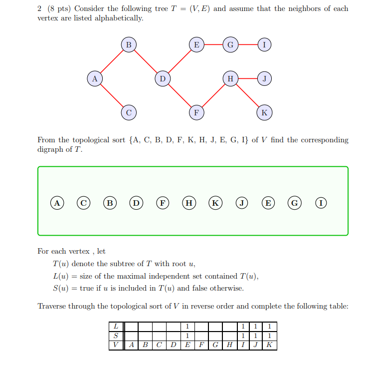 2 8 Pts Consider The Following Tree T V E And Chegg Com